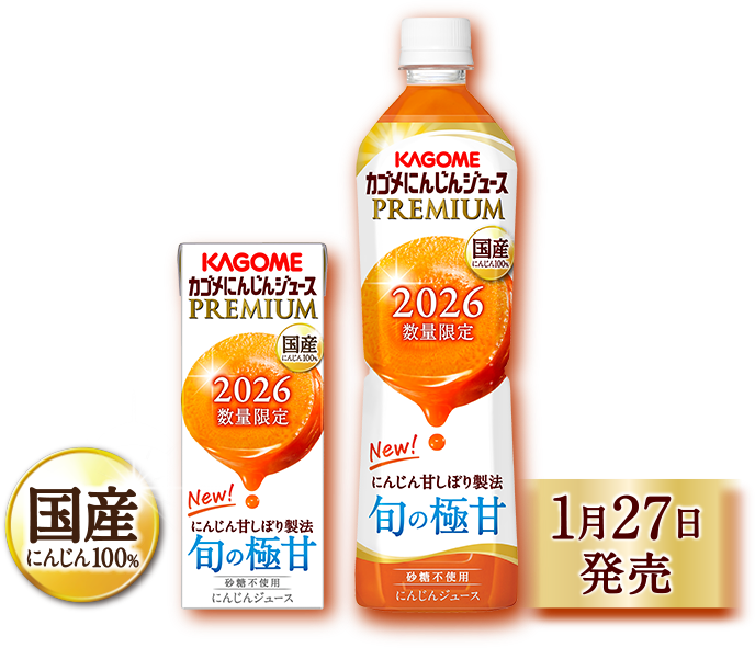 旬の国産にんじんのみを使用。カゴメ独自の新製法「にんじん甘しぼり製法」により、にんじん本来の甘さを極めた驚きの味わいが楽しめます。旬のおいしさが味わえる数量限定のにんじんジュースです。